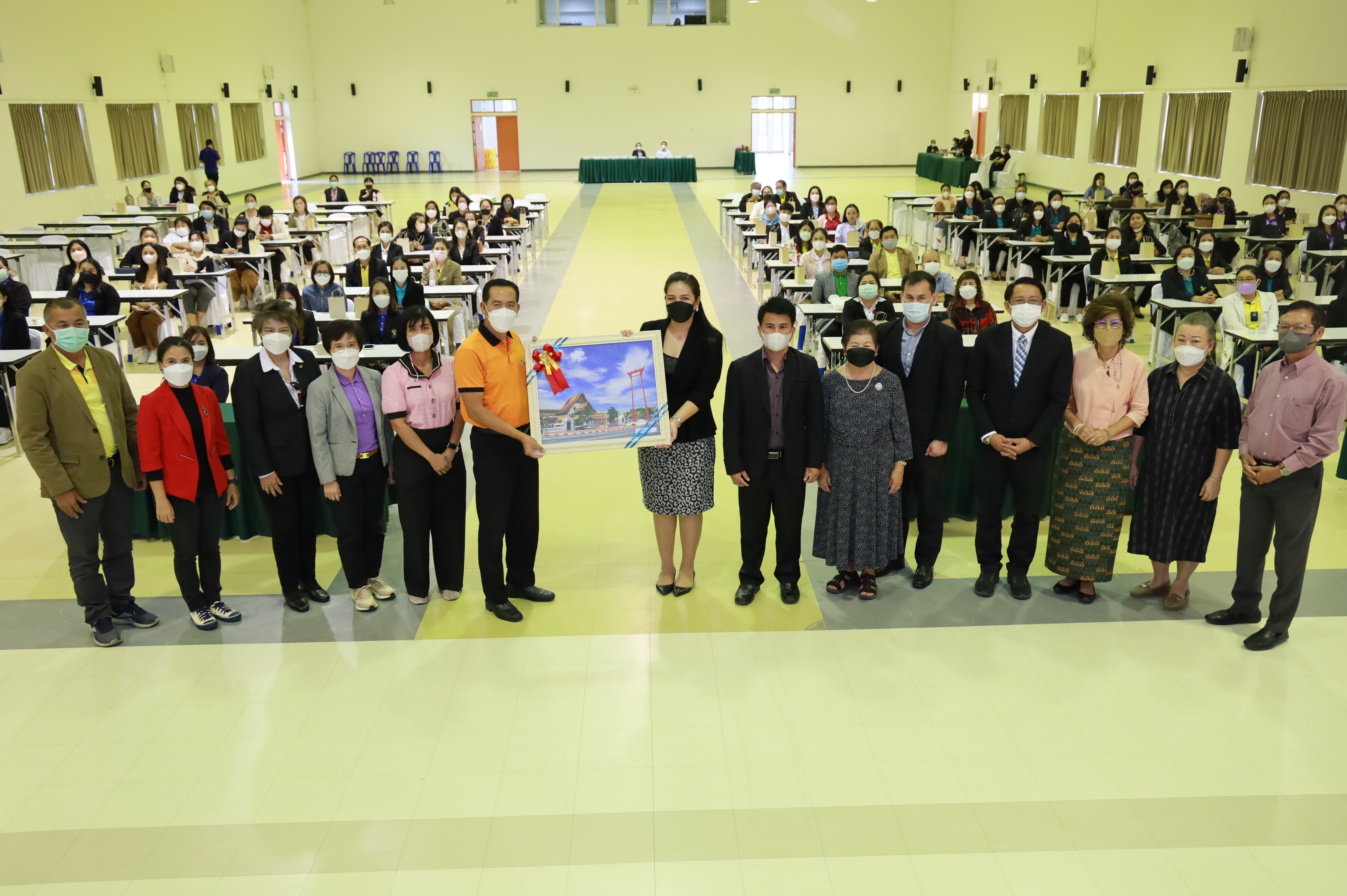 นางสาววัชราภรณ์ สมพงษ์ผึ้ง รองผู้อำนวยการสถานศึกษา โรงเรียนอนุบาลนานาชาติตากสินระยอง รักษาการในตำแหน่ง ผู้อำนวยการสถานศึกษา พร้อมด้วยคณะผู้บริหาร คณะผู้เชี่ยวชาญ คณะครูและบุคลากรโรงเรียนมัธยมตากสินระยอง ได้ให้การต้อนรับคณะศึกษาดูงาน ข้าราชการครูและบุคลากรทางการศึกษาจาก สำนักงานเขตจอมทอง กรุงเทพมหานคร จำนวน 103 คน ในด้านการจัดการเรียนการสอน การบริหารจัดการชั้นเรียน และการพัฒนาผู้เรียน ในวันที่ 22 ธันวาคม 2565 เวลา 13.00 น. ณ ห้องประชุมชั้น 3 อาคารอเนกประสงค์
