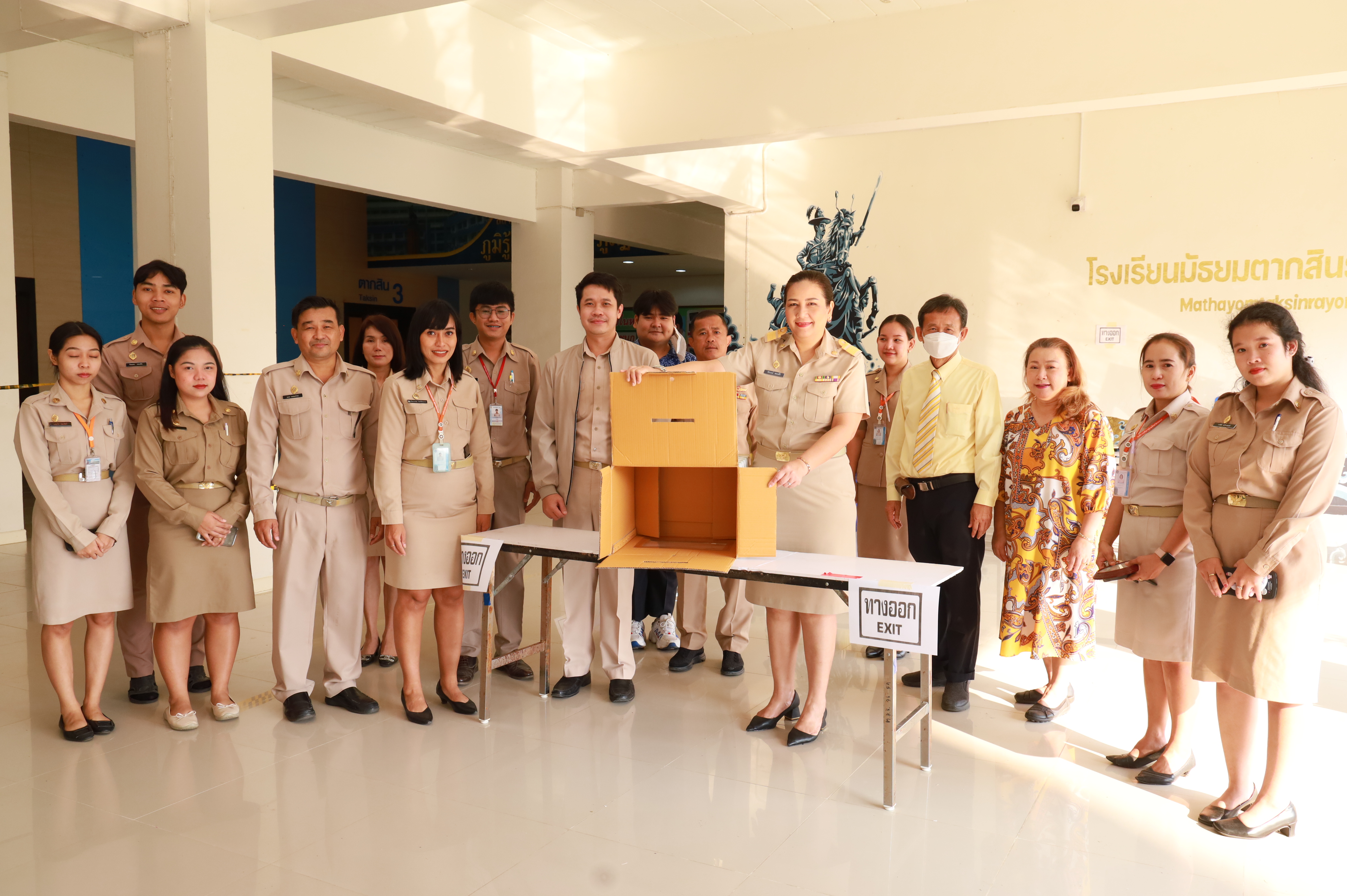 คณะครูงานคณะกรรมการนักเรียน ได้ดำเนินงานเลือกตั้งประธานนักเรียน ประจำปีการศึกษา 2567 ในวันที่ 12 กุมภาพันธ์ 2567 เวลา 08:30 น. ณ หน้าห้องกิจกรรมนักเรียน โดยมีนางสาววัชราภรณ์ สมพงษ์ผึ้ง รองผู้อำนวยการสถานศึกษา โรงเรียนอนุบาลนานาชาติตากสินระยอง รักษาการในตำแหน่ง ผู้อำนวยการสถานศึกษา โรงเรียนมัธยมตากสินระยอง เปิดกล่องเลือกตั้งประธานนักเรียน ประจำปีการศึกษา 2567 เพื่อแสดงความโปร่งใส ซึ่งเป็นกิจกรรมส่งเสริมประชาธิปไตยในโรงเรียน เพื่อให้นักเรียนได้ตระหนักถึงความสำคัญของระบอบประชาธิปไตยและนักเรียนได้เรียนรู้วิธีการเลือกตั้งและการยอมรับในนโยบายและคะแนนเสียงของนักเรียนในโรงเรียน ที่ได้เลือกประธานนักเรียน