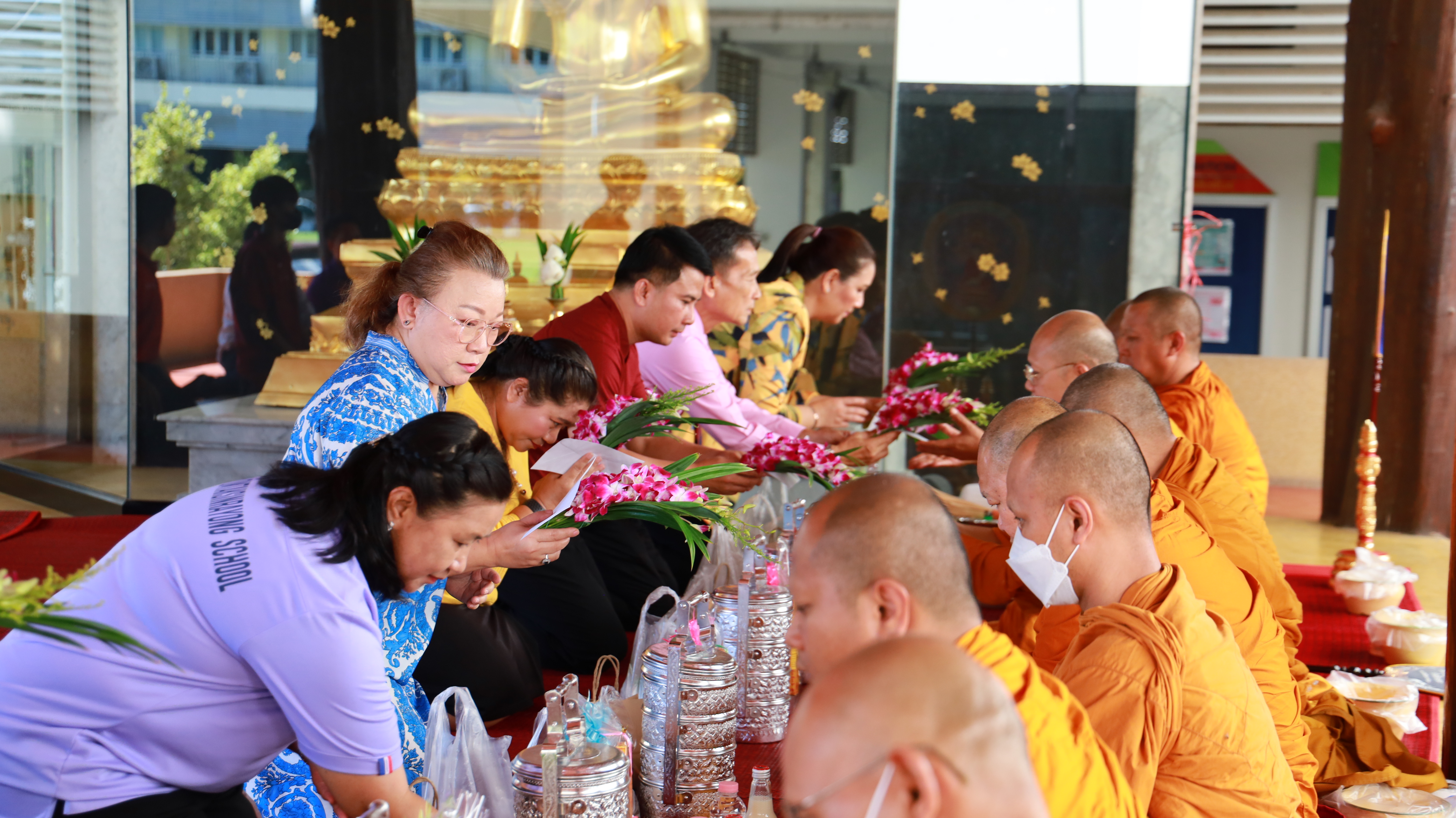 นางสาววัชราภรณ์ สมพงษ์ผึ้ง รองผู้อำนวยการสถานศึกษา โรงเรียนอนุบาลนานาชาติตากสินระยอง รักษาการในตำแหน่ง ผู้อำนวยการสถานศึกษา โรงเรียนมัธยมตากสินระยอง ได้จัดกิจกรรมพิธีทำบุญเลี้ยงพระเพล ก่อนเปิดภาคเรียนที่ 1 ปีการศึกษา 2567 ในวันที่ 14 พฤษภาคม 2567 ณ ลานพระพุทธอังคีรส โรงเรียนมัธยมตากสินระยอง เพื่อความเป็นสิริมงคล ในการปฏิบัติงาน โดยยึดถือเป็นธรรมเนียมปฏิบัติทุก ๆ ปีการศึกษา