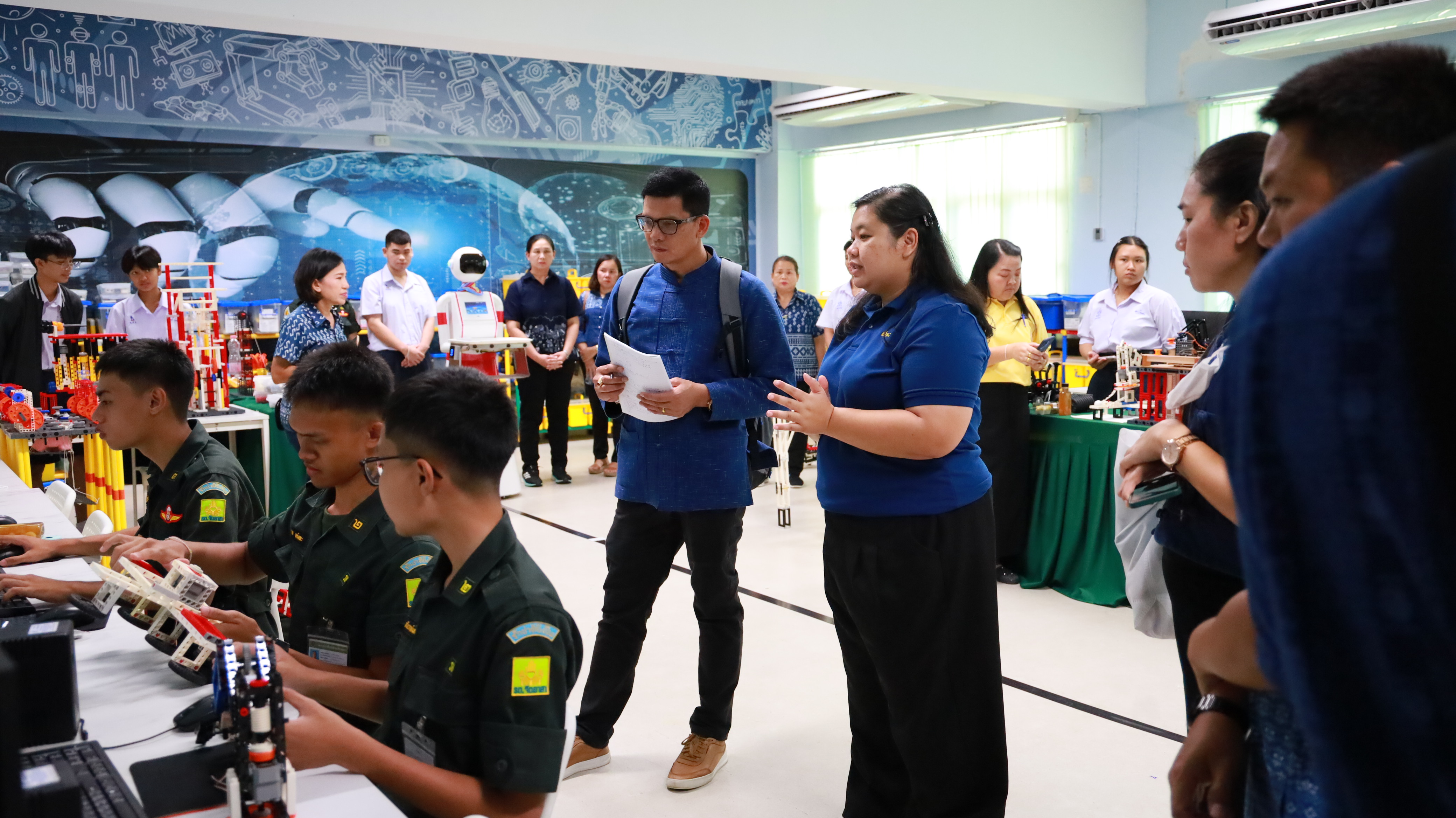 นางสาววัชราภรณ์ สมพงษ์ผึ้ง รองผู้อำนวยการสถานศึกษา โรงเรียนอนุบาลนานาชาติตากสินระยอง รักษาการในตำแหน่ง ผู้อำนวยการสถานศึกษา โรงเรียนมัธยมตากสินระยอง ได้ให้การต้อนรับคณะผู้บริหาร คณะครูและบุคลากรทางการศึกษาโรงเรียนในสังกัดเทศบาลเมืองแพร่ ในวันที่ 8 สิงหาคม 2567 จำนวน 150 คน ณ หอประชุมชั้น 3 อาคารอเนกประสงค์ โดยศึกษาดูงานด้านการบริหารวิชาการ งานหลักสูตรโรงเรียน หลักสูตร MEP และหลักสูตรภาษาจีน งานยกระดับผลสัมฤทธิ์ทางการเรียน ตลอดทั้งเข้าเยี่ยมชมการจัดการเรียนการสอนในห้องเรียนและห้องปฏิบัติการหุ่นยนต์ของโรงเรียนมัธยมตากสินระยอง