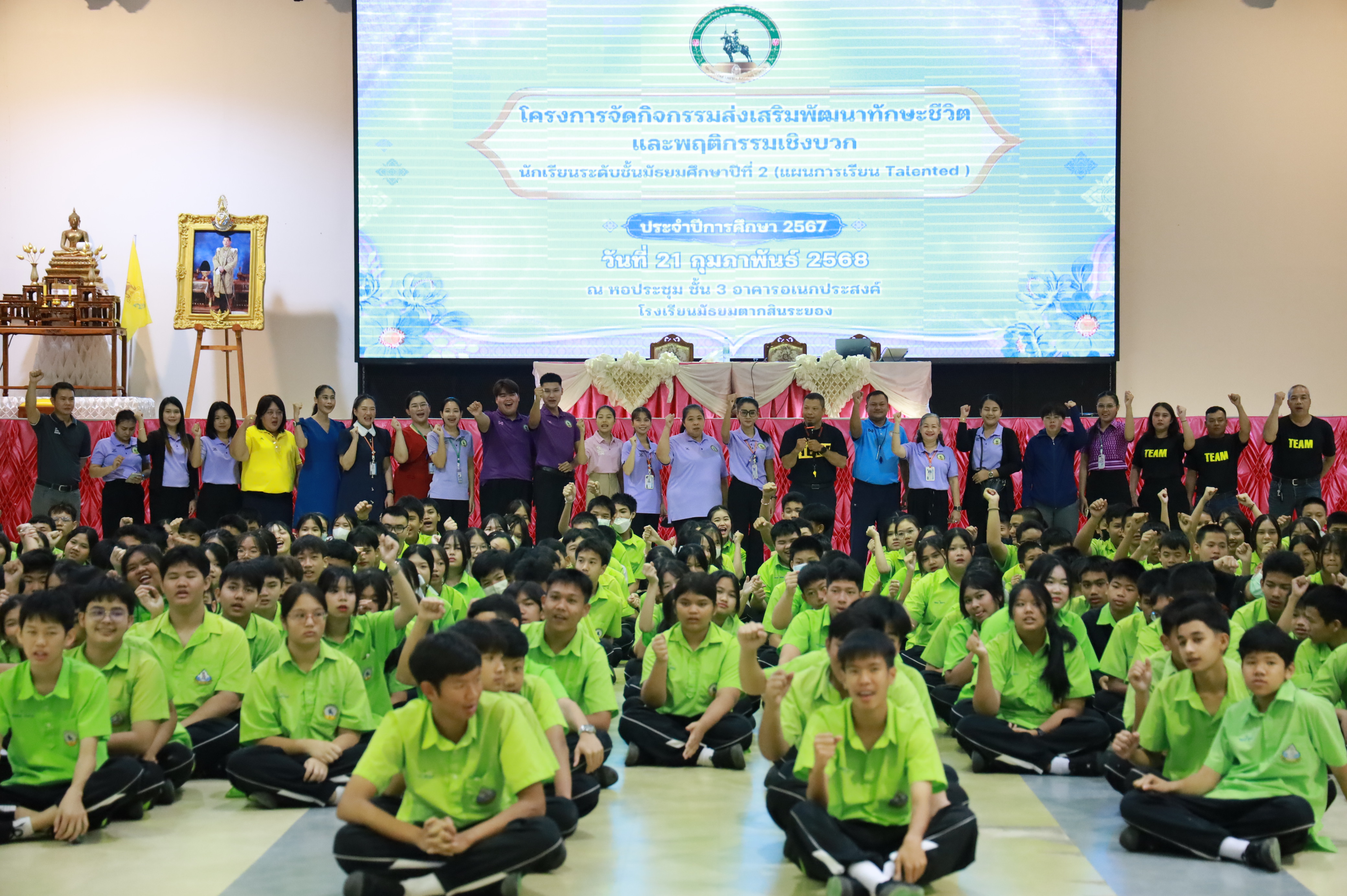 โรงเรียนมัธยมตากสินระยอง ได้จัดโครงการจัดกิจกรรมส่งเสริมพัฒนาทักษะชีวิตและพฤติกรรมเชิงบวก ให้กับนักเรียนระดับชั้นมัธยมศึกษาปีที่ 2 (แผนการเรียน Talented) ในวันที่ 21 กุมภาพันธ์ 2568 ณ อาคารอเนกประสงค์ ชั้น 3 เพื่อเป็นการพัฒนาทักษะและการสร้างวินัยเชิงบวกให้กับนักเรียน เป็นวิธีจัดการกับพฤติกรรมที่ไม่พึงประสงค์ อย่างสร้างสรรค์โดยไม่ใช้วิธีการลงโทษ จะมีจุดมุ่งหมายให้นักเรียนรู้จักควบคุมพฤติกรรมที่ไม่พึงประสงค์ของตัวเอง มากกว่าที่จะโดนบังคับ เพื่อให้เกิดการปรับพฤติกรรมไปในแนวทางที่ดีขึ้นและมีผลต่อเนื่องไปในอนาคต อีกทั้งเป็นการสร้างความสนุกสนานให้กับนักเรียนทุกคนในการทำกิจกรรมในครั้งนี้