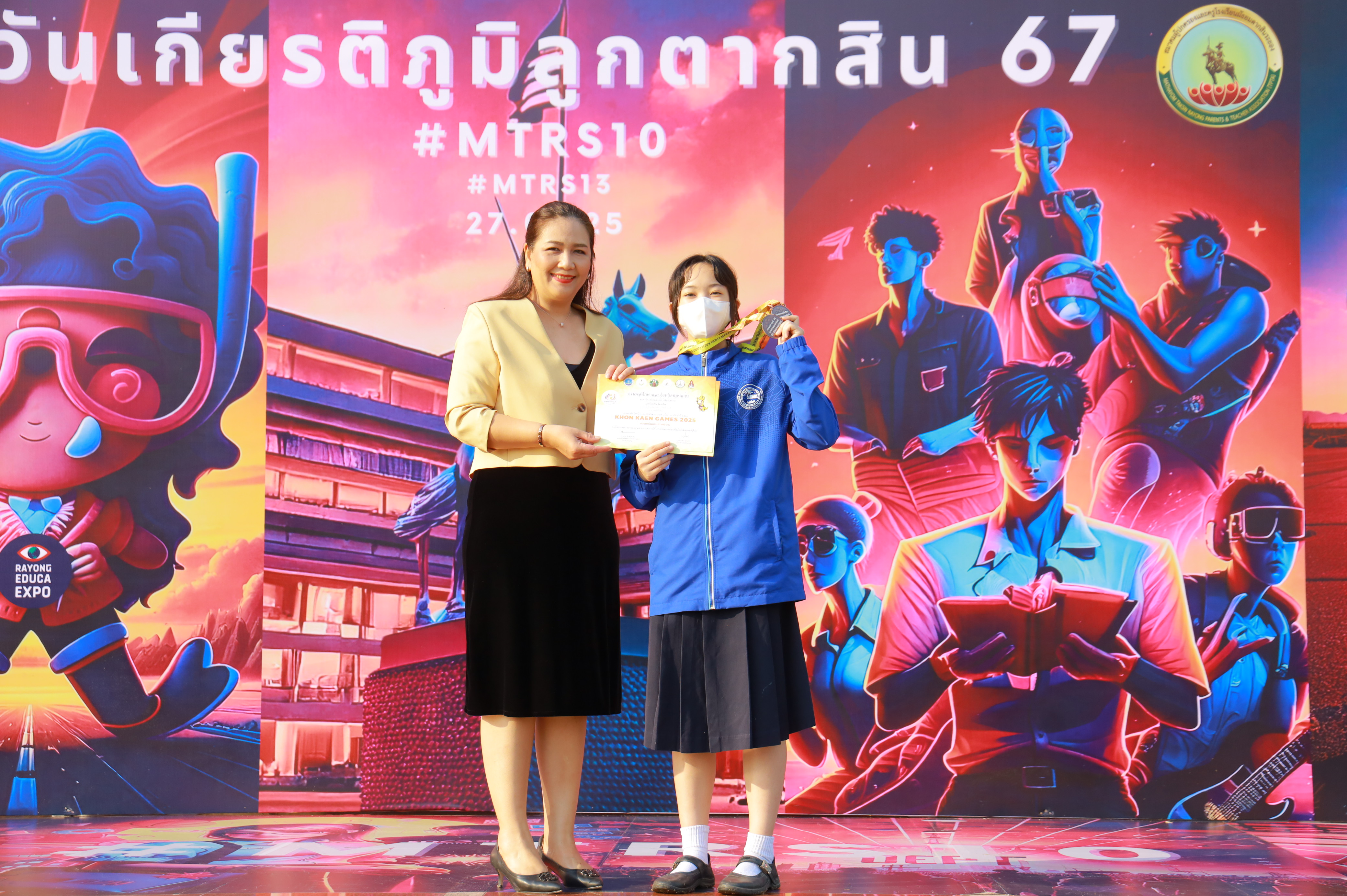 นางสาววัชราภรณ์ สมพงษ์ผึ้ง ผู้อำนวยการสถานศึกษา โรงเรียนมัธยมตากสินระยอง ร่วมแสดงความยินดีกับนักเรียนที่เข้าร่วมการแข่งขันกีฬานักเรียน นักศึกษาแห่งชาติ ครั้งที่ 44 "ขอนแก่นเกมส์" ระหว่างวันที่ 22 - 30 มกราคม 2568 ณ จังหวัดขอนแก่น ดังนี้