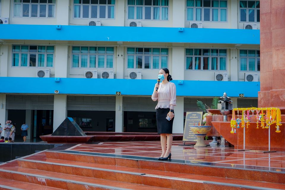 นางสาวภรณ์ภัทร์ธัญ งามวงศ์เงิน ผู้อำนวยการสถานศึกษาโรงเรียนมัธยมตากสินระยอง ได้ให้โอวาท และข้อคิดแก่นักเรียนโรงเรียนมัธยมตากสินระยอง และชื่นชมแสดงความยินดีกับนักเรียนชั้นมัธยมศึกษาปีที่ 6 ที่ได้รับคัดเลือกเข้าศึกษาต่อในระดับอุดมศึกษา "Tcas รอบที่ 1" จำนวน 105 คน ในวันอังคารที่ 23 กุมภาพันธ์ 2564 เวลา 8.00 น. ณ สนามลานพระเจ้าตากสินมหาราช