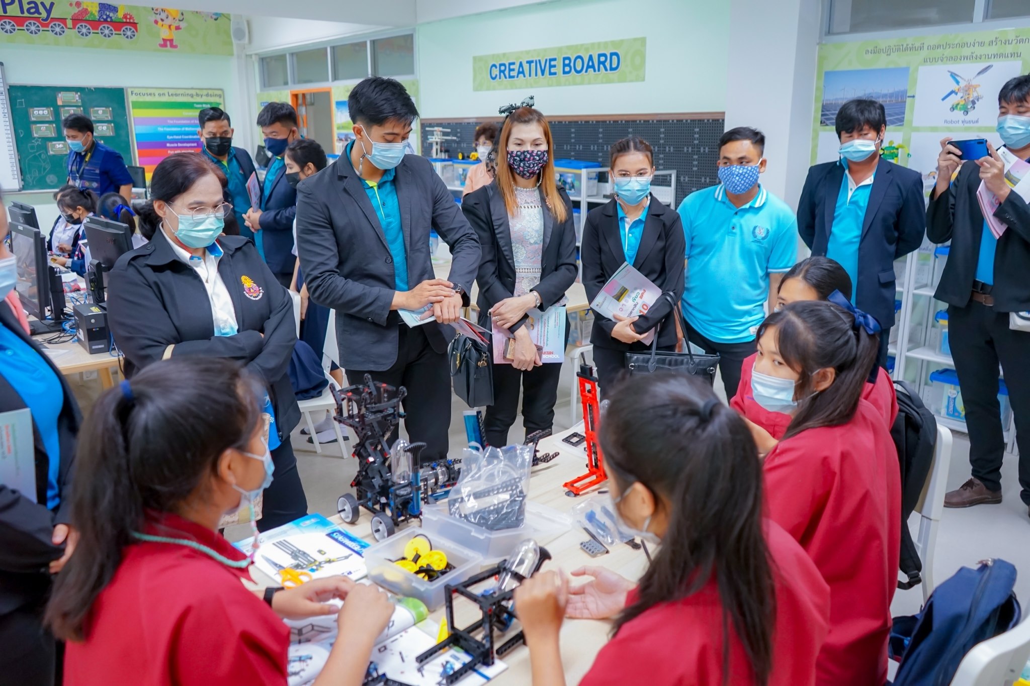 นางสาวภรณ์ภัทร์ธัญ งามวงศ์เงิน ผูัอำนวยการสถานศึกษาฯ ได้มอบหมายให้ นายวัฒนาพงษ์ กนกแก้ว รองผู้อำนวยการสถานศึกษาฯ นางสุพิชฌาย์ สวัสดิราษฎร์ ,นางวนิดา อุ่ยพานิช ครูผู้เชี่ยวชาญ และคณะครู ร่วมต้อนรับคณะศึกษาดูงานจากเทศบาลเมืองใหม่บางบัวทอง ต.บางบัวทอง จ.นนทบุรี ในวันที่ 5 มีนาคม 2564 เวลา 09.00 - 12.00 น. โดยมีนางวัชราภรณ์ พละกลาง ผู้อำนวยการกองการศึกษา ศาสนาและวัฒนธรรม พร้อมคณะผู้บริหาร ครู และ บุคลากรทางการศึกษา จำนวน 12 ท่าน ได้เข้าดูงานเกี่ยวกับการจัดการศึกษาและกระบวนการจัดการเรียนรู้ในสถานศึกษา เพื่อจะนำไปเป็นแนวทางในการจัดการเรียนรู้และปรับปรุงพัฒนาต่อไปในอนาคต