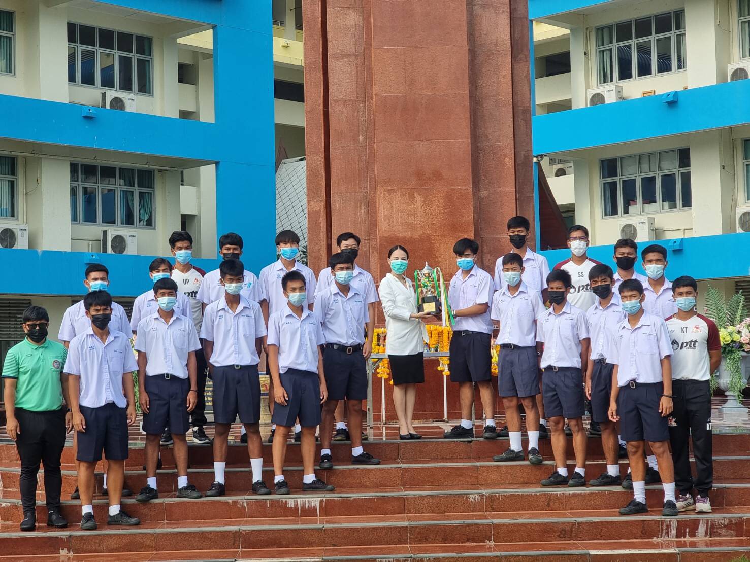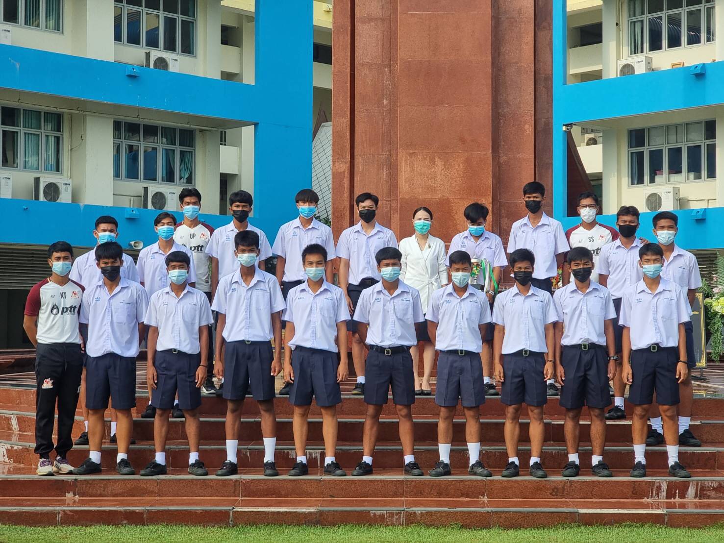 นางสาวภรณ์ภัทร์ธัญ งามวงศ์เงิน ผู้อำนวยการสถานศึกษา โรงเรียนมัธยมตากสินระยอง ร่วมแสดงความยินดีกับนักกีฬาฟุตบอลของโรงเรียนมัธยมตากสินระยอง (พีทีที อะคาเดมี) PTT Academy ในวันที่ 7 เมษายน 2564 นำโดยนายสุธี สุขสมกิจ ผู้อำนวยการ พีทีที อะคาเดมี และทีมงานผู้ฝึกสอน ที่สามารถคว้าแชมป์🏆 จากการแข่งขันฟุตบอลระหว่างโรงเรียน ประจำปีการศึกษา 2563 ประเภททั่วไป รุ่นอายุไม่เกิน 16 ปี ได้สำเร็จ