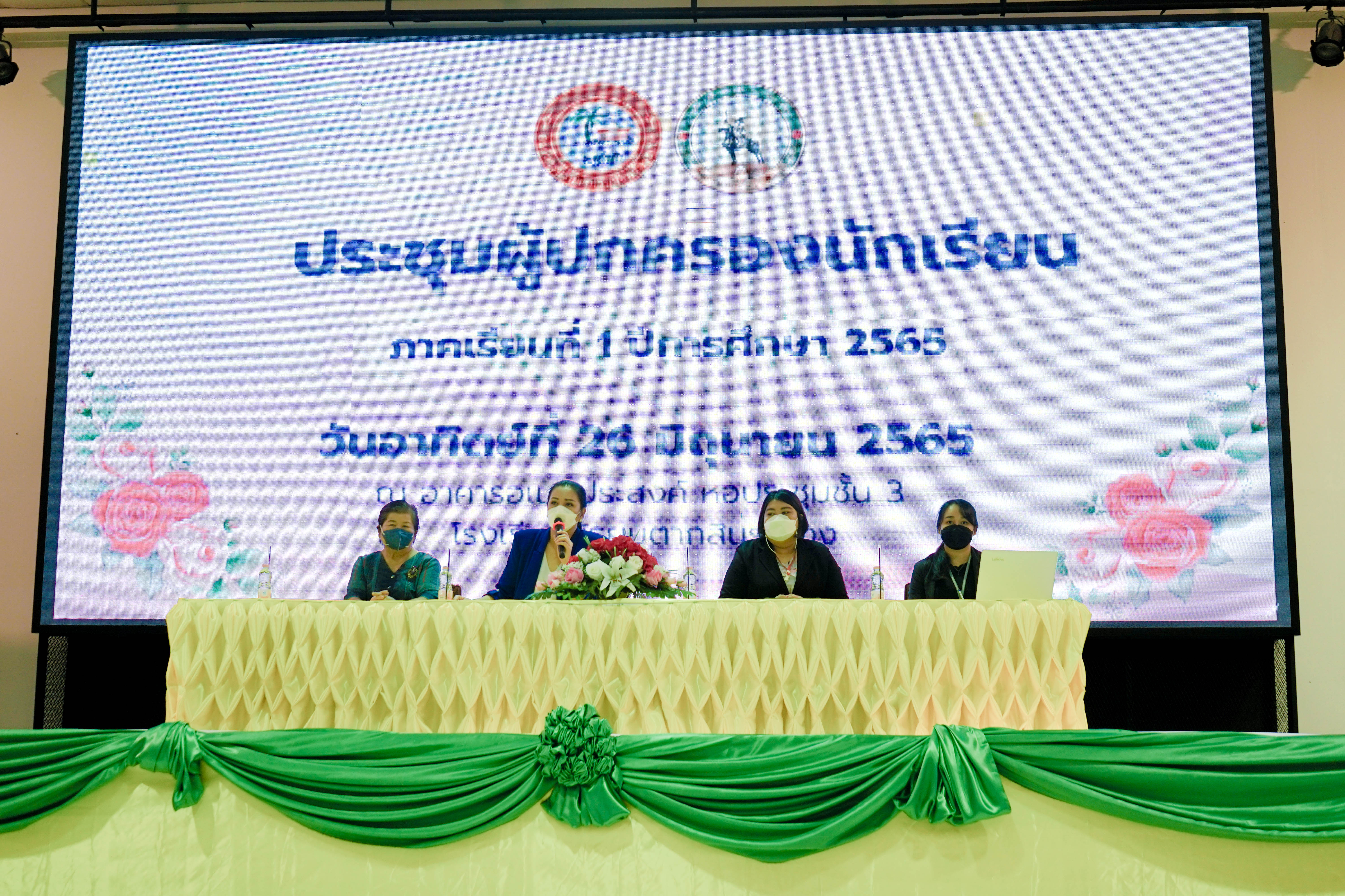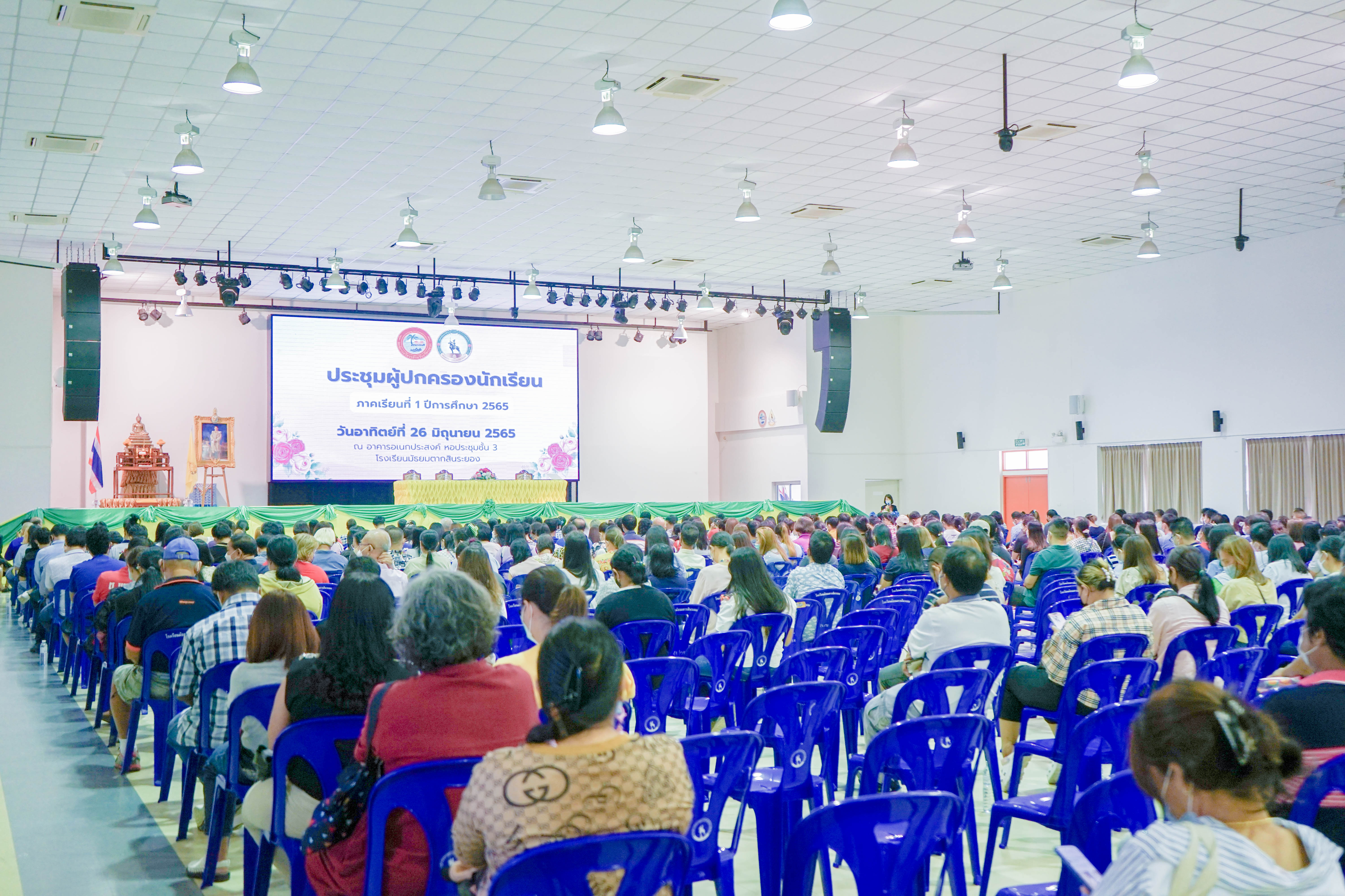 โรงเรียนมัธยมตากสินระยอง ได้จัดการประชุมผู้ปกครองประจำภาคเรียนที่ 1 ปีการศึกษา 2565 ของนักเรียนระดับชั้นมัธยมศึกษาตอนต้นในช่วงเช้า และระดับชั้นมัธยมศึกษาตอนปลายช่วงบ่าย ในวันที่ 26 มิถุนายน 2565 โดยมีนายอรุณ วิชกิจ ผู้เชี่ยวชาญพิเศษด้านการวางแผนและวิเคราะห์นโยบายองค์การบริหารส่วนจังหวัดระยอง ได้ให้เกียรติมาเป็นประธาน และนางสาววัชราภรณ์ สมพงษ์ผึ้ง ผู้อำนวยการสถานศึกษาโรงเรียนมัธยมตากสินระยอง พร้อมด้วยคณะผู้เชี่ยวชาญ และคณะครูโรงเรียนมัธยมตากสินระยอง เพื่อเป็นการพบปะผู้ปกครอง และเป็นโอกาสอันดีที่ทางโรงเรียนจะได้ดำเนินการแจ้งผู้ปกครองให้ทราบนโยบาย แนวทางการบริหารจัดการ และข้อมูลที่จำเป็นต่าง ๆ เพื่อประโยชน์ของนักเรียนและโรงเรียนมัธยมตากสินระยองต่อไป