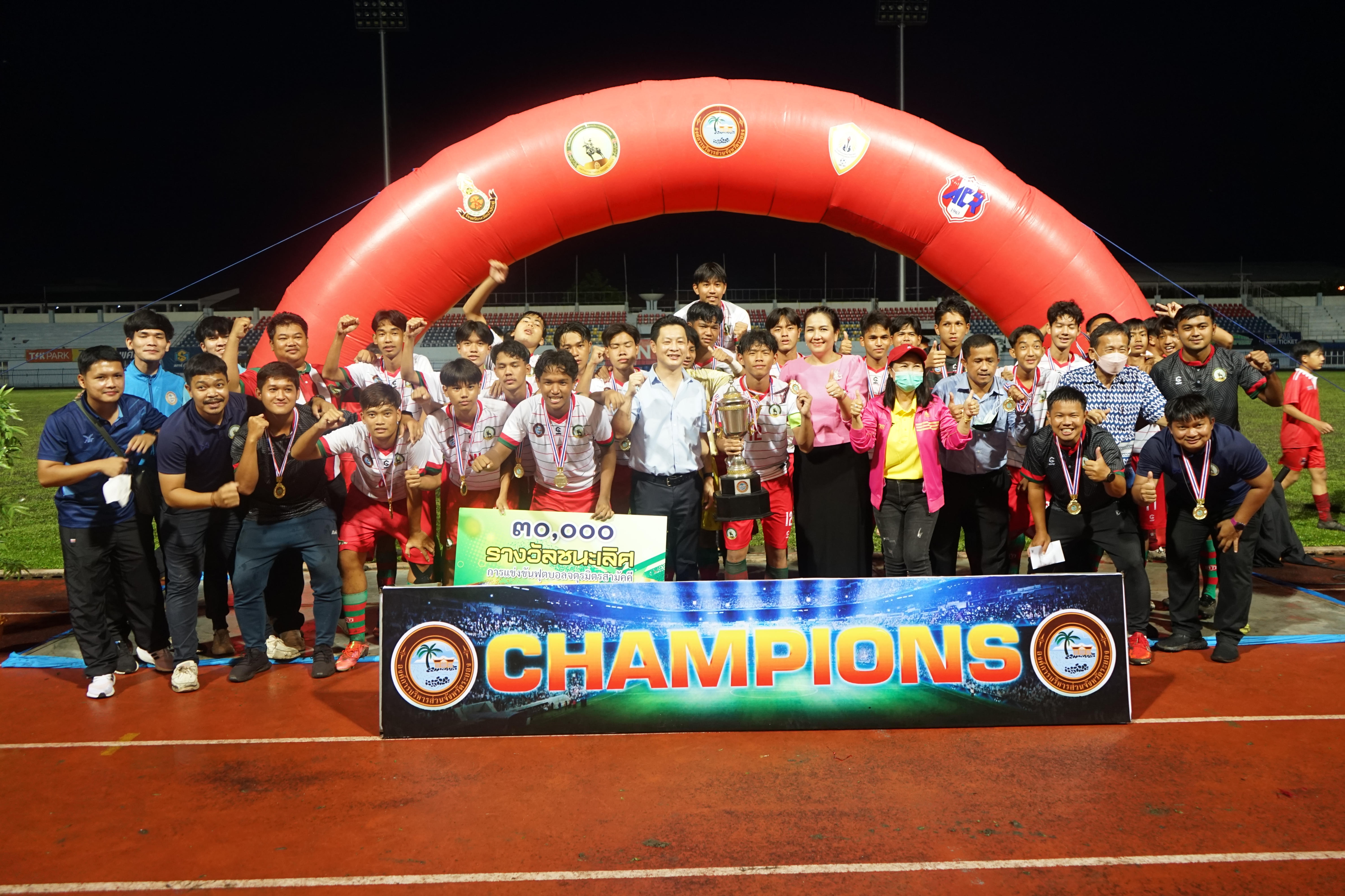 โรงเรียนมัธยมตากสินระยอง ขอแสดงความยินดีกับรางวัลชนะเลิศ และทุกๆรางวัล ของทุกโรงเรียนที่เข้าร่วมในการแข่งขันกีฬาฟุตบอลโครงการจตุรมิตรสามัคคี โดยองค์การบริหารส่วนจังหวัดระยอง ในวันที่ 26 สิงหาคม 2565 เวลา 17.30 น. โดยมีนายกิตติ เกียรติ์มนตรี รองนายกองค์การบริหารส่วนจังหวัดระยอง ให้เกียรติเป็นประธานในพิธีปิดการแข่งขันกีฬาโครงการจตุรมิตรสามัคคี พร้อมด้วย นางสาวราตรี คุ้มญาติ ผู้อำนวยการกองการศึกษา ศาสนาและวัฒนธรรม (กล่าวรายงาน) นางสาววัชราภรณ์ สมพงษ์ผึ้ง รองผู้อำนวยการสถานศึกษา โรงเรียนอนุบาลนานาชาติตากสินระยอง รักษาการในตำแหน่ง ผู้อำนวยการสถานศึกษา โรงเรียนมัธยมตากสินระยอง และผู้ที่เกี่ยวข้องเข้าร่วมงานโดยพร้อมเพรียง ณ สนามกีฬากลางจังหวัดระยอง
