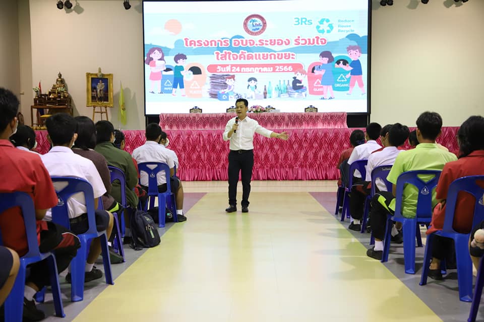นายกิตติ เกียรติ์มนตรี รองนายกองค์การบริหารส่วนจังหวัดระยอง เป็นประธานเปิดโครงการ อบจ.ระยอง ร่วมใจ ใส่ใจคัดแยกขยะ" รุ่นที่ 3 ใน วันที่ 24 กรกฎาคม 2566 เวลา 09.00 น. ณ โรงเรียนมัธยมตากสินระยอง โดยมีนายสุริยะ ศิริวัฒน์ รก.ผอ.กองสาธารณสุข เป็นผู้กล่าวรายงาน ซึ่งมีคณะครูและนักเรียนเข้าร่วมโครงการในครั้งนี้ จำนวน 100 คน โดยฝ่ายจัดการมูลฝอยและสิ่งปฏิกูล กองสาธารณสุข องค์การบริหารส่วนจังหวัดระยอง ได้เล็งเห็นถึงความสำคัญในการคัดแยกขยะจากต้นทาง เพื่อให้บุคลากรและเด็กนักเรียน มีความรู้ ความเข้าใจ และถือปฏิบัติร่วมกันในการลดและคัดแยกขยะ โดยเด็กๆจะได้รับความรู้จากวิทยากรผู้มีความรู้และความสามารถ คือ คุณอัษฎา สวนมา และทีมงานจากบริษัท ไออาร์พีซี พร้อมทั้งเด็กๆจะได้เข้าฐานการเรียนรู้ ประกอบด้วยฐานการคัดแยกขยะ ฐานธนาคารขยะ และฐานการใช้ประโยชน์จากขยะ