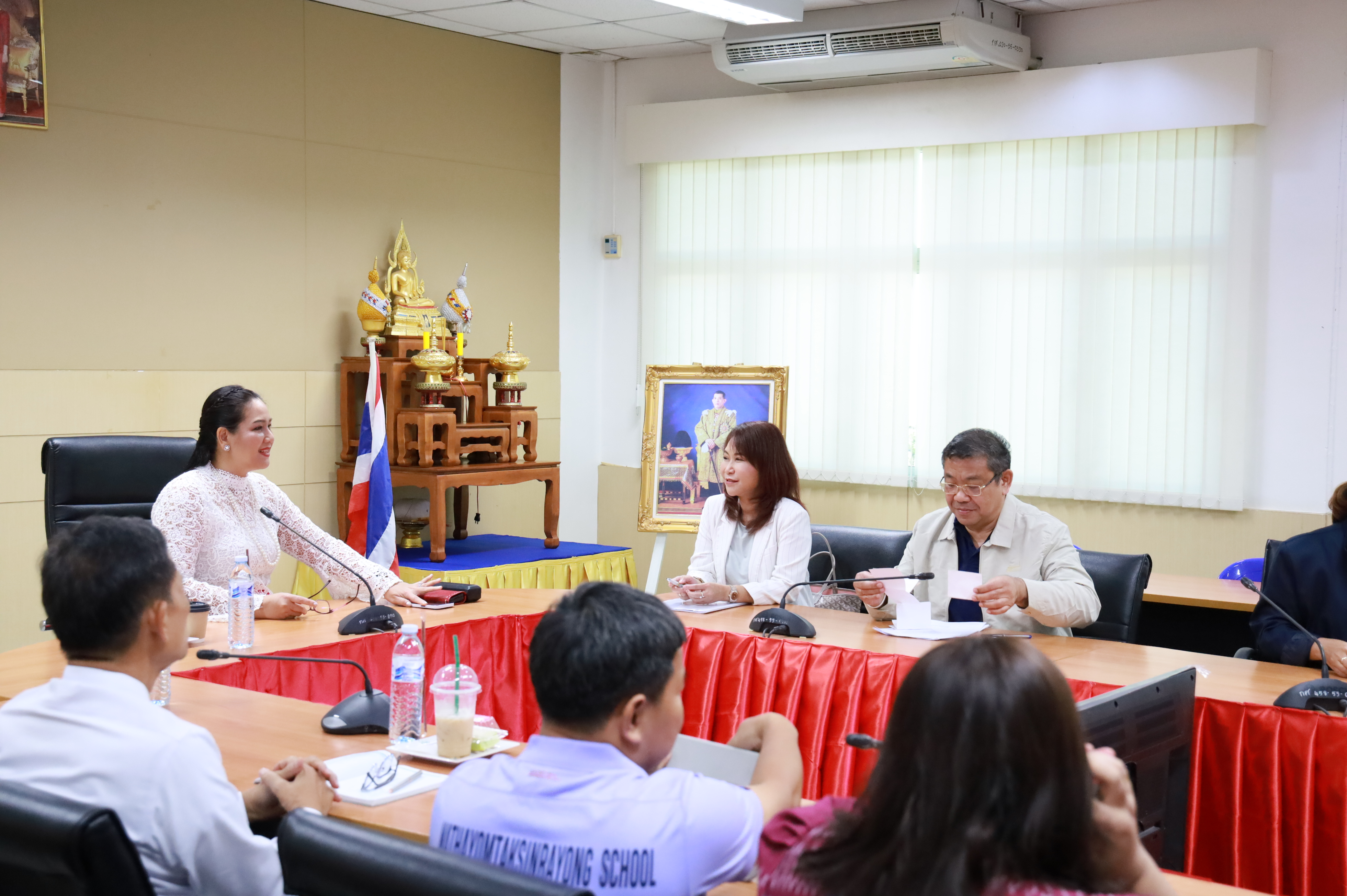 นางสาววัชราภรณ์ สมพงษ์ผึ้ง รองผู้อำนวยการสถานศึกษา โรงเรียนอนุบาลนานาชาติตากสินระยอง รักษาการในตำแหน่ง ผู้อำนวยการสถานศึกษา โรงเรียนมัธยมตากสินระยอง พร้อมด้วยคณะผู้บริหาร ครู เข้าร่วมการประชุมกำหนดการลงพื้นที่เข้าเยี่ยมโรงเรียนที่ศักยภาพในการพัฒนาเป็นโรงเรียนต้นแบบ อีอีซี ในวันที่ 1 ธันวาคม 2566 ณ ห้องประชุมระยอง 2 เพื่อหารือแนวทางการพัฒนาการเรียนการสอนที่สอดคล้องกับทิศทางการพัฒนาพื้นที่ อีอีซี โดยมีผู้เข้าร่วมประชุมเป็นหัวหน้าแผนต่าง ๆ