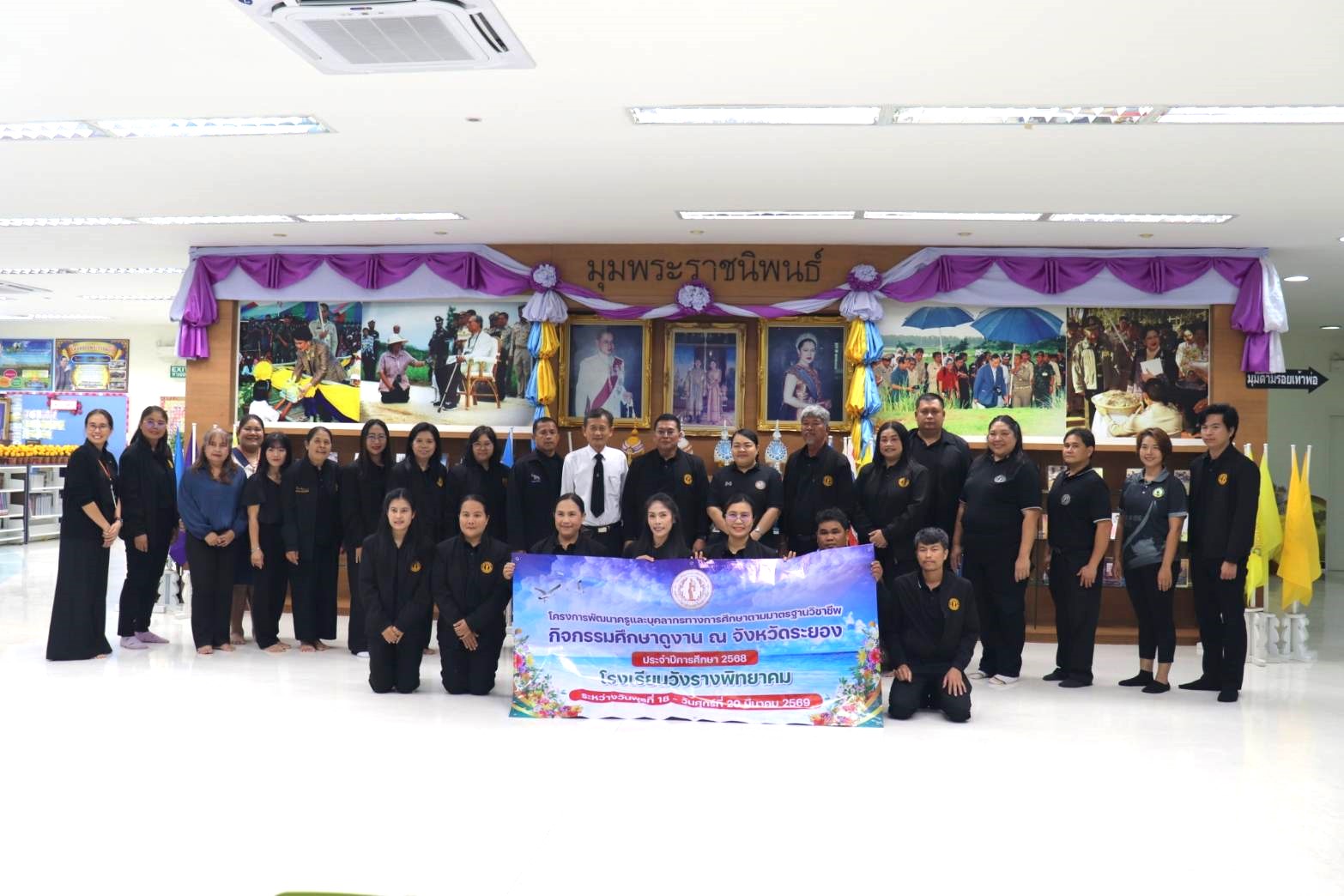 นางสาววัชราภรณ์ สมพงษ์ผึ้ง ผู้อำนวยการสถานศึกษา โรงเรียนมัธยมตากสินระยอง ได้มอบหมายให้นางศศิธร นารินนท์ รองผู้อำนวยการสถานศึกษา โรงเรียนมัธยมตากสินระยอง พร้อมด้วยคณะผู้บริหาร ครูผู้เชี่ยวชาญ ครูและบุคลากรโรงเรียนมัธยมตากสินระยอง ร่วมต้อนรับคณะผู้บริหาร คณะครูและบุคลากรทางการศึกษาโรงเรียนวังรางพิทยาคม สังกัดองค์การบริหารส่วนจังหวัดนครราชสีมา จำนวน 23 คน ในวันที่ 18 มีนาคม 2569 ณ ณ อุทยานการเรียนรู้ระยอง RK Park ได้เดินทางเข้าศึกษาดูงานและเยี่ยมชมในด้านการบริหารการจัดการสถานศึกษาและงานสวนพฤกษศาสตร์