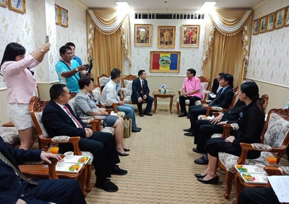 นางสาวภรณ์ภัทร์ธัญ งามวงศ์เงิน ผู้อำนวยการสถานศึกษาโรงเรียนมัธยมตากสินระยอง สังกัดองค์การบริหารส่วนจังหวัดระยอง ร่วมต้อนรับกรรมการเมืองหลิวโจ แห่งสาธารณะรัฐประชาชนจีนเข้าคารวะ ผู้ว่าราชการจังหวัดระยอง ในวันที่ 25 ตุลาคม 2561 ณ ห้องประชุม ศาลากลางจังหวัดระยอง