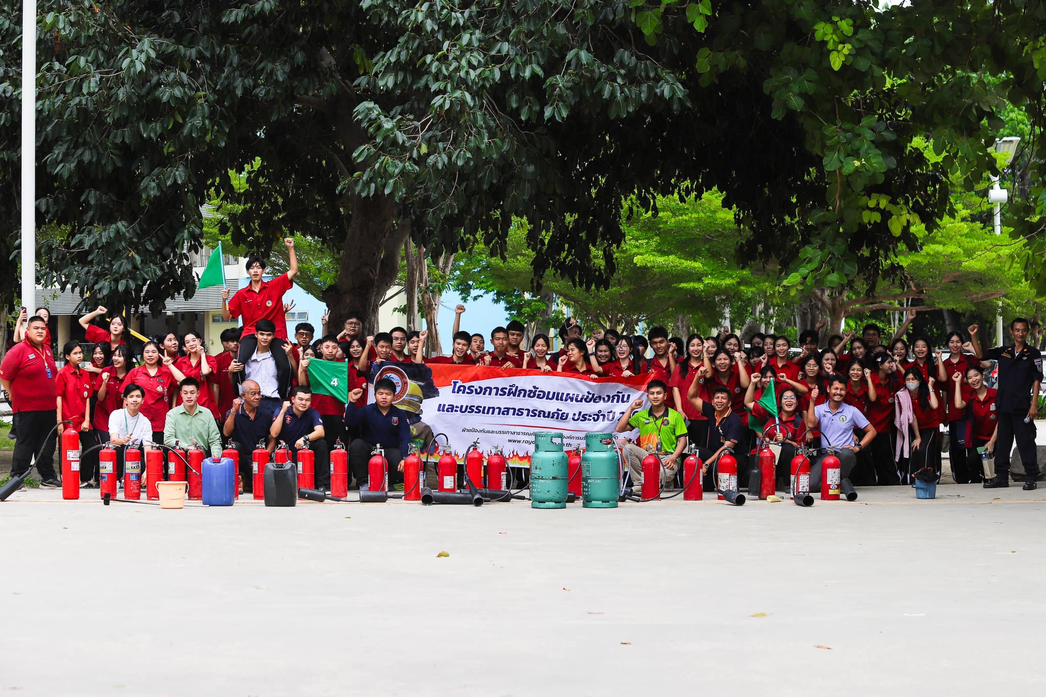 นักเรียนระดับชั้นมัธยมศึกษาปีที่ 5 โรงเรียนมัธยมตากสินระยอง ได้เข้าร่วมโครงการฝึกซ้อมแผนป้องกันและบรรเทาสาธารณภัย ประจำปี 2567 ในวันที่ 3 กรกฎาคม 2567 เวลา 08.30 น. ณ หอประชุม ชั้น 3 อาคารอเนกประสงค์ และลานฝึกซ้อมกีฬา โดยมีนายสมบัติ มุมทอง หัวหน้าสำนักปลัดองค์การบริหารส่วนจังหวัดระยอง เป็นประธานในพิธีฯ พร้อมด้วยดร.สุกิจ โพธิ์ศิริกุล ผู้เชี่ยวชาญด้านการบริหารงานวิชาการด้านมัธยม และนายเกชา มีสวน ครู วิทยฐานะครูชำนาญการ รักษาการในตำแหน่ง รองผู้อำนวยการสถานศึกษา กลุ่มงานกิจการนักเรียน คณะครู นักเรียน และเจ้าหน้าที่ที่เกี่ยวข้องเข้าร่วมพิธีเปิดอย่างพร้อมเพรียงกัน จัดขึ้นเพื่อให้นักเรียนในสถานศึกษาได้มีความรู้ในเรื่องการฝึกใช้เครื่องดับเพลิงแบบต่าง ๆ การอพยพหนีไฟ การฝึกเคลื่อนย้ายผู้ประสบภัยด้วยมือและอุปกรณ์รอบตัว สามารถเป็นผู้นำในการอพยพหนีไฟได้อย่างปลอดภัย ซึ่งการฝึกซ้อมแผนในครั้งนี้ได้รับเกียรติจากเจ้าหน้าที่เทศบาลนครระยอง มาเป็นวิทยากรในการบรรยายและฝึกปฏิบัติ เพื่อให้ผู้เข้าร่วมการอบรมมีทักษะในการอพยพหนีไฟอย่างถูกต้องและปลอดภัยเมื่อเกิดเหตุการณ์ดังกล่าวในภายภาคหน้าต่อไป (ขอขอบคุณข้อมูลและภาพของ Facebook อบจ.ระยอง)