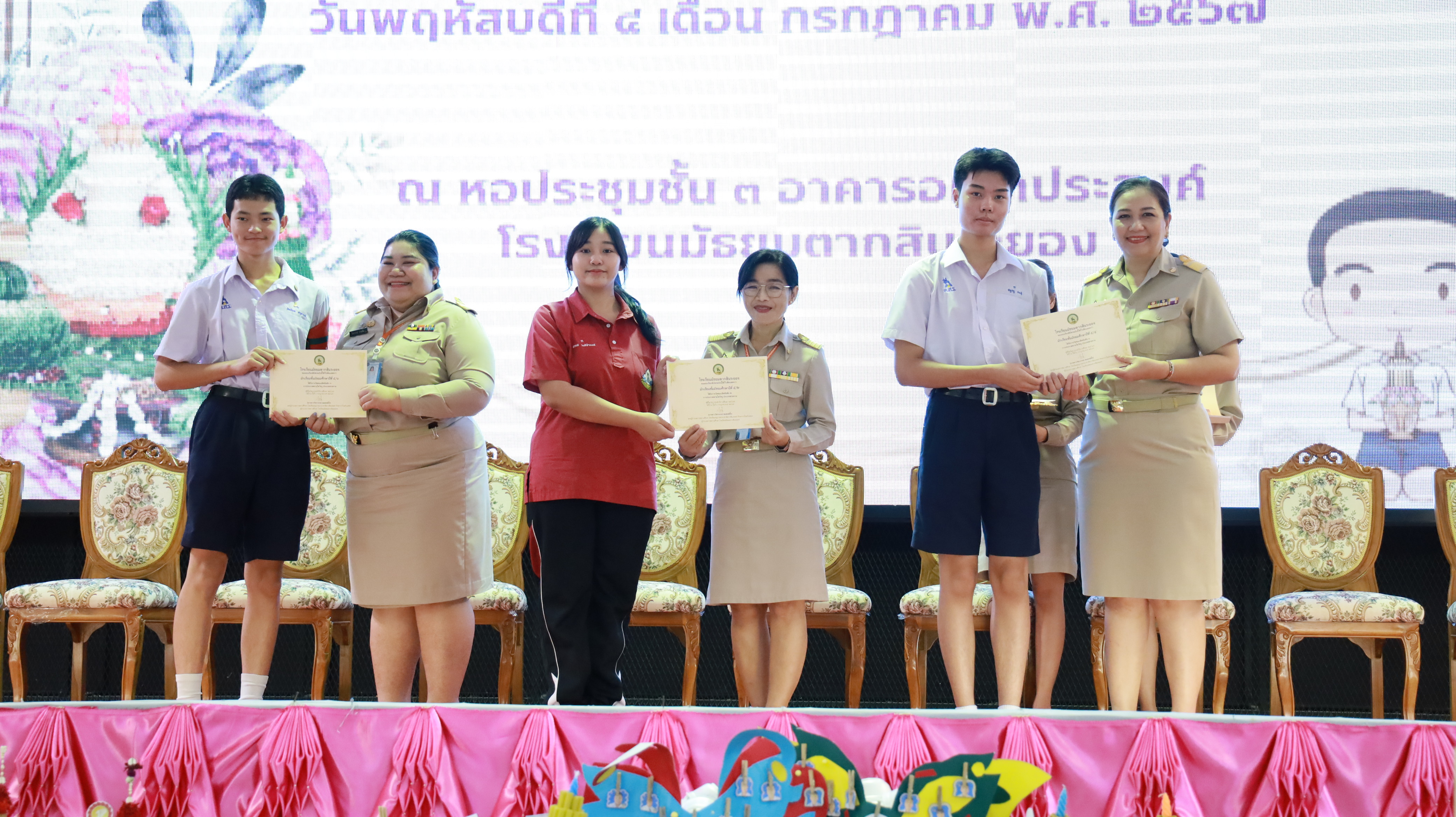 โรงเรียนมัธยมตากสินระยอง ได้จัดกิจกรรมพิธีไหว้ครู ประจำปีการศึกษา 2567 ซึ่งถือเป็นประเพณีที่ดีงาม แสดงถึงความเคารพนับถือและระลึกถึงคุณความดีของครูอาจารย์ ผู้ประสิทธิ์ประสาทวิชาความรู้ ในวันพฤหัสบดีที่ 4 กรกฎาคม 2567 เวลา 08.30 น. ณ หอประชุมชั้น 3 อาคารอเนกประสงค์ โดยมีนางสาววัชราภรณ์ สมพงษ์ผึ้ง รองผู้อำนวยการสถานศึกษา โรงเรียนอนุบาลนานาชาติตากสินระยอง รักษาการในตำแหน่ง ผู้อำนวยการสถานศึกษา โรงเรียนมัธยมตากสินระยอง เป็นประธานและกล่าวให้โอวาทในพิธี และมอบเกียติบัตรการประกวดจัดพานไหว้ครูพร้อมด้วยคณะครูผู้เชี่ยวชาญ คณะครูและนักเรียนเข้าร่วมงานโดยพร้อมเพรียงกัน