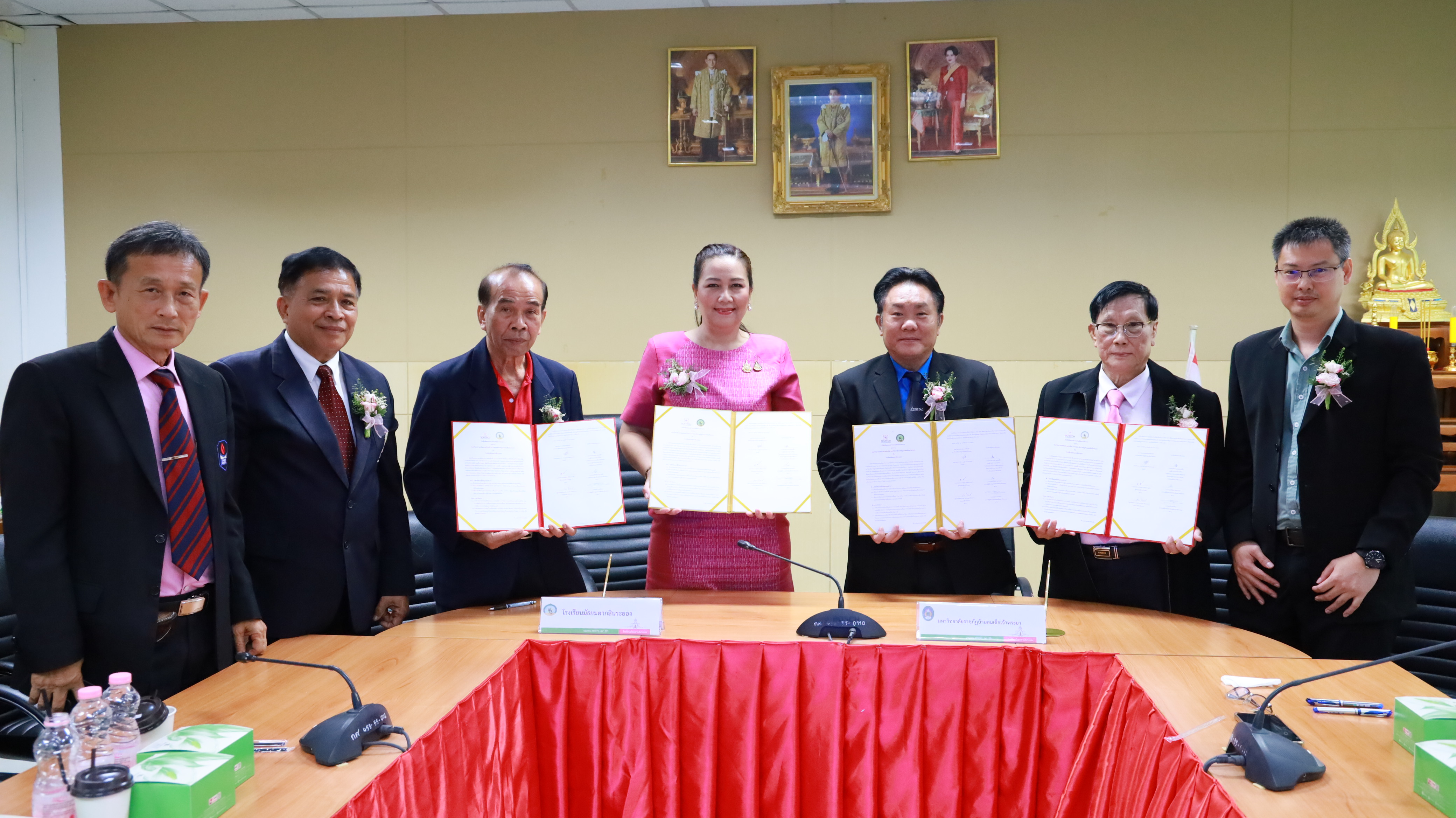 โรงเรียนมัธยมตากสินระยอง ได้ดำเนินพิธีลงนามบันทึกข้อตกลงความร่วมมือทางวิชาการ กับ คณะวิทยาศาสตร์และเทคโนโลยี มหาวิทยาลัยราชภัฏบ้านสมเด็จเจ้าพระยา ในวันที่ 19 พฤศจิกายน 2567 ณ ห้องประชุมระยอง 2 ตั้งแต่เวลา 09.00 - 12.00 น. โดยมีนางสาววัชราภรณ์ สมพงษ์ผึ้ง รองผู้อำนวยการสถานศึกษา โรงเรียนอนุบาลนานาชาติตากสินระยอง รักษาการในตำแหน่ง ผู้อำนวยการสถานศึกษา โรงเรียนมัธยมตากสินระยอง กล่าวต้อนรับ พร้อมด้วยคณะครูผู้เชี่ยวชาญ ครู และนักเรียน ทางโรงเรียนได้รับเกียรติจาก ท่านรองศาสตราจารย์ ดร.บุญมี กวินเสกสรรค์ คณบดีคณะวิทยาศาสตร์และเทคโนโลยี มหาวิทยาลัยราชภัฏบ้านสมเด็จเจ้าพระยา และคณาจารย์ทีมงาน โดยได้ลงนามทำบันทึกข้อตกลงความร่วมมือทางวิชาการในการส่งเสริมการดำเนินงานตามภารกิจให้เกิดประสิทธิภาพ โดยยึดประโยชน์ของหน่วยงานทั้งสอง ด้วยการส่งเสริมและพัฒนาองค์ความรู้ทางด้านวิทยาศาสตร์ เทคโนโลยี การศึกษา วิจัย นวัตกรรม และบริการทางวิชาการ รวมถึงการศึกษาต่อให้กับนักเรียนต่อไป